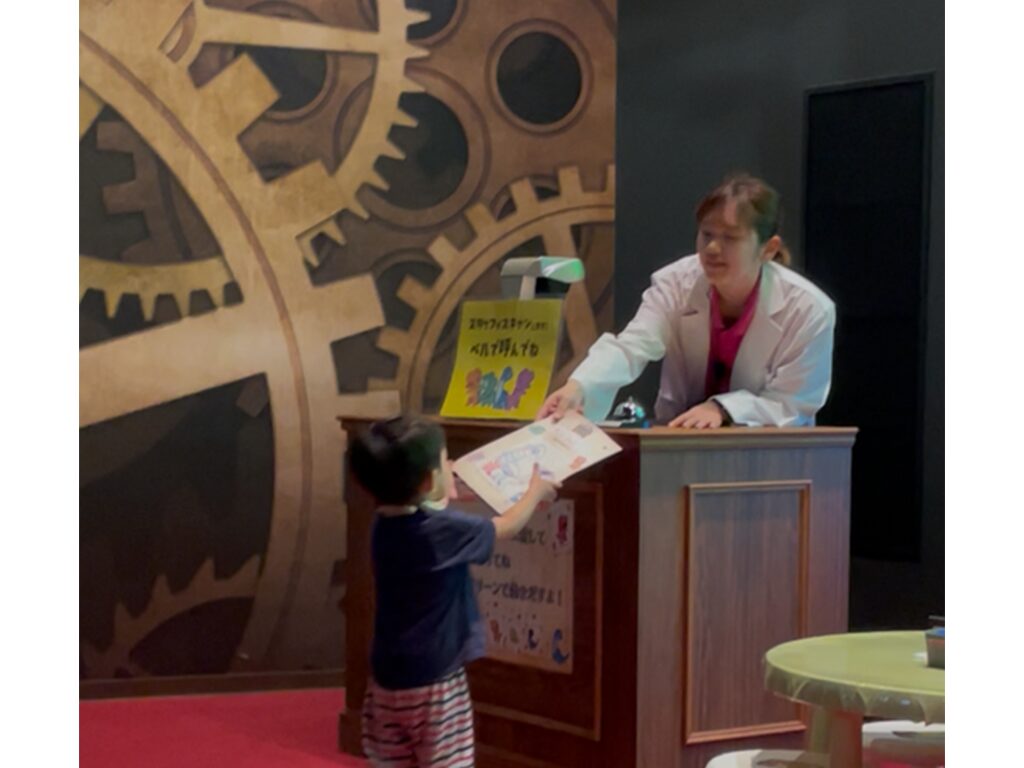 ②ぬりえを、お姉さんに渡すと何やらカメラで読み取り…