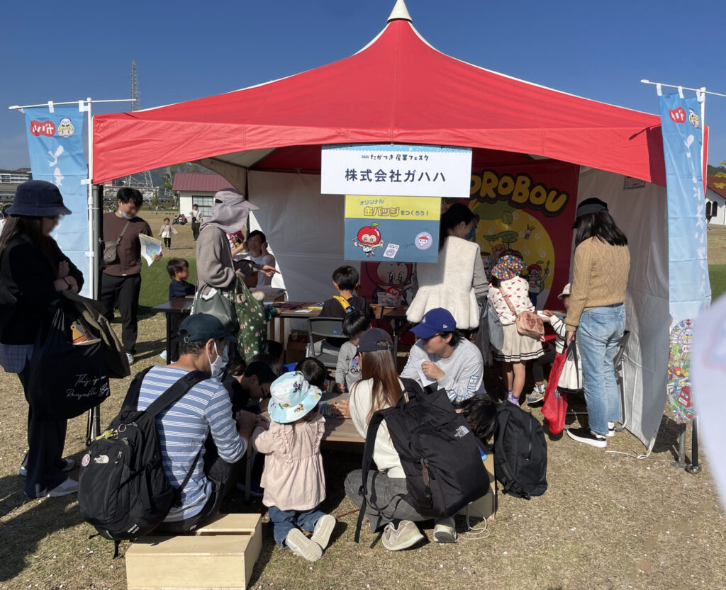 11月8日(土)の安満遺跡公園で開催されました、たかつき産業フェスタで缶バッジ作りのワークショップを行いました〜