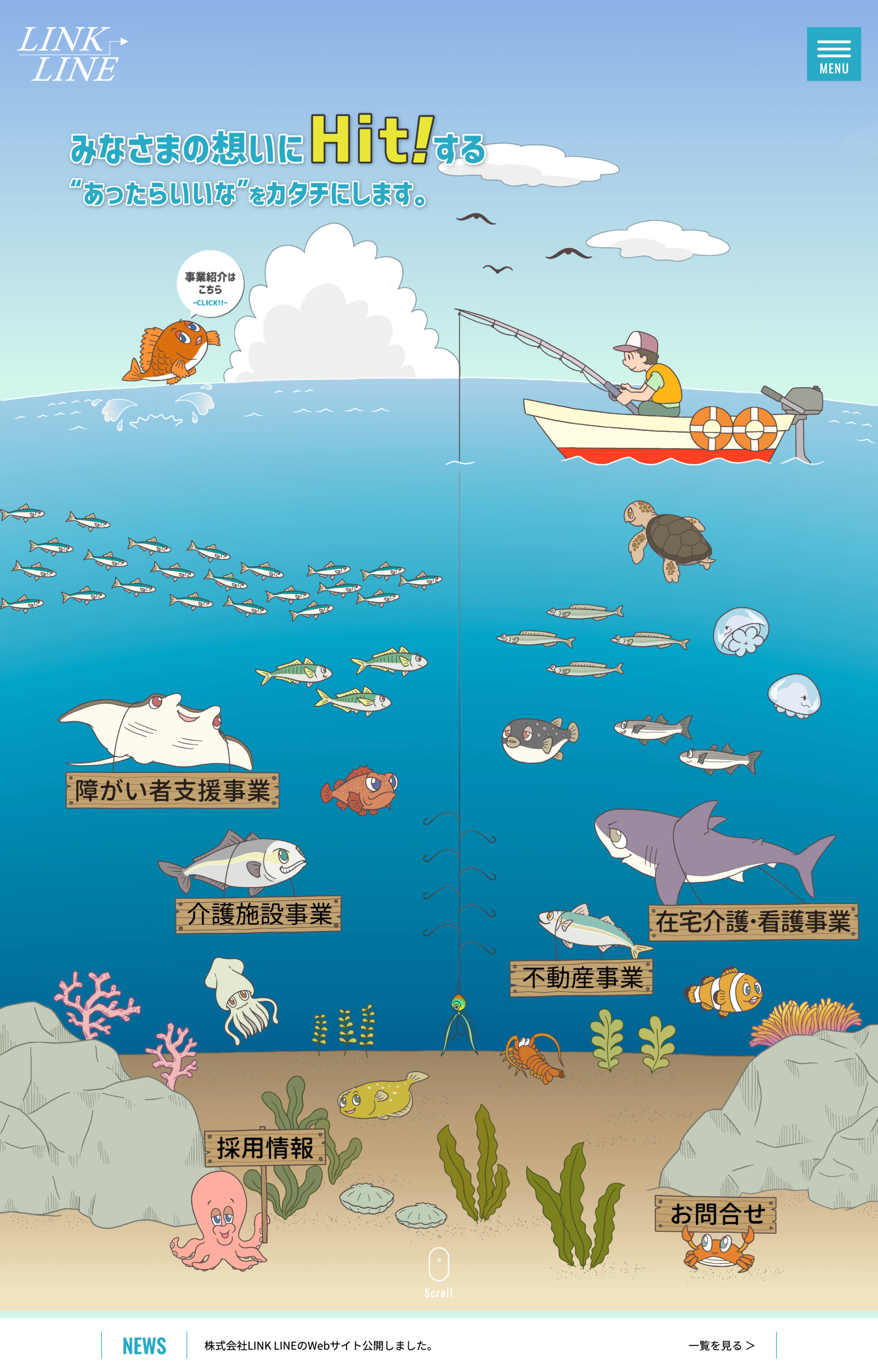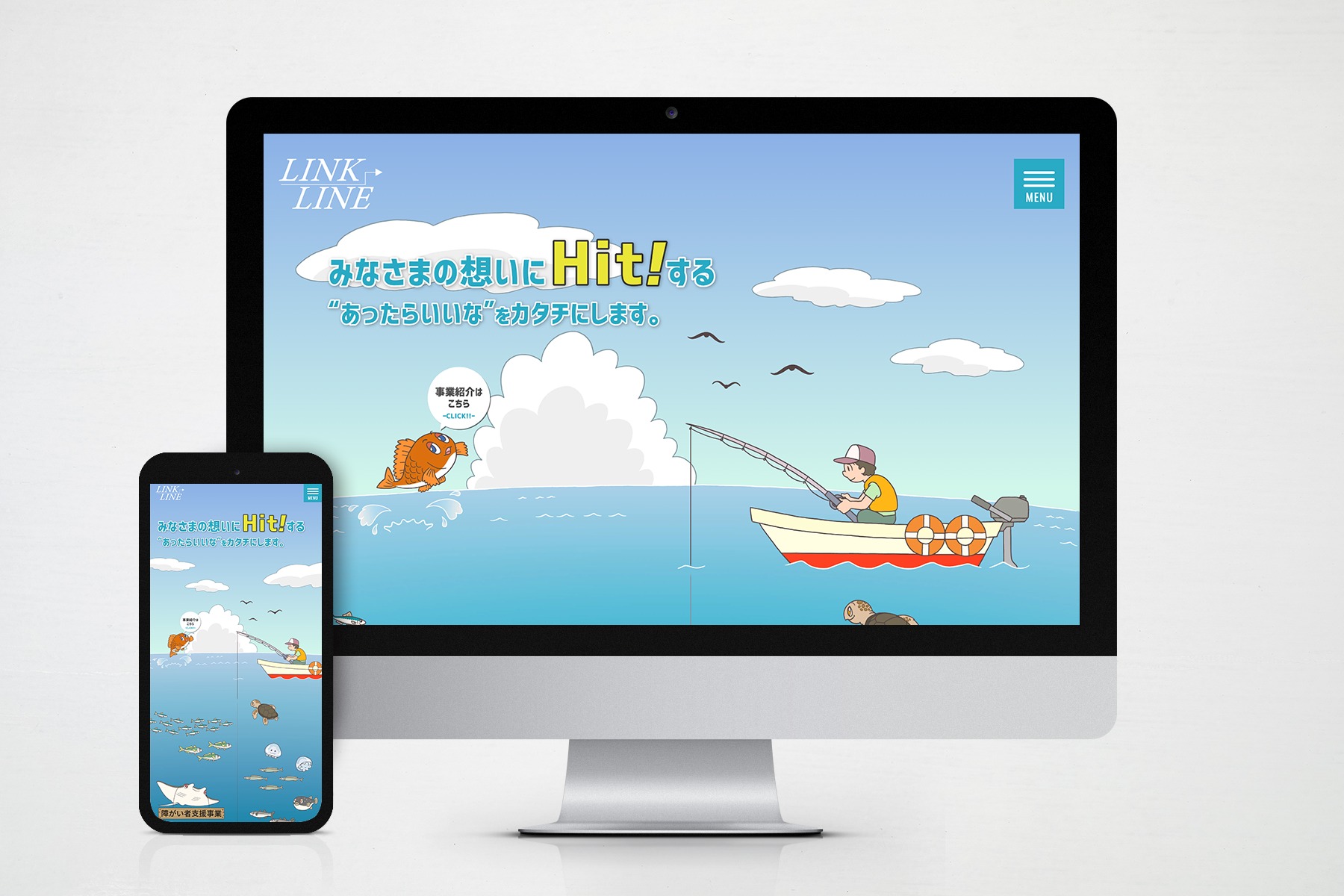 「株式会社LINKLINE」様のホームページ制作を担当しました。楽しさや親しみやすさが伝わるよう、動きや演出にこだわった仕上がりにしています。