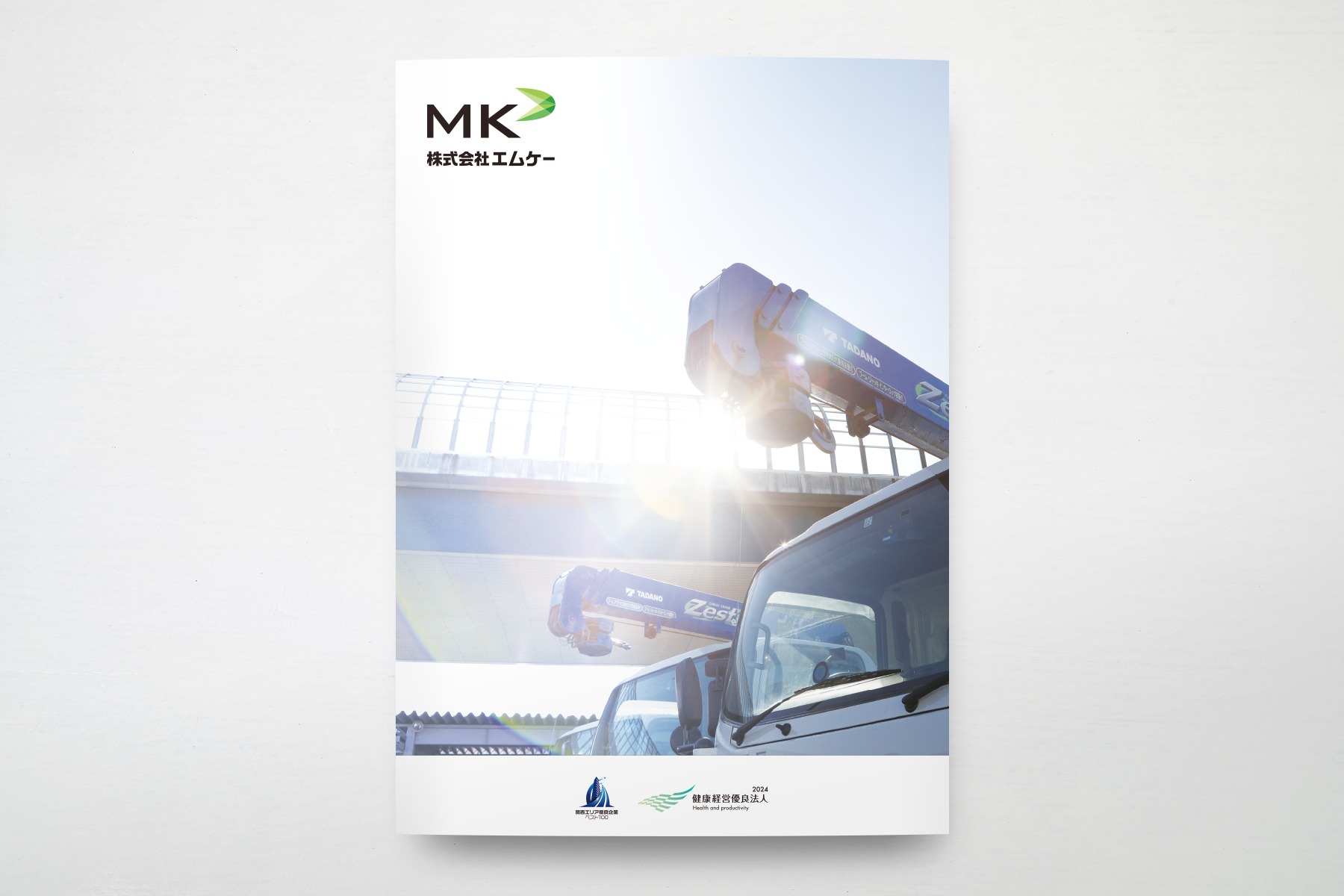 「株式会社エムケー」様の会社パンフレットリニューアルを担当しました。情報の整理とデザインの刷新を行い、企業の魅力や強みが伝わる構成に仕上げています。