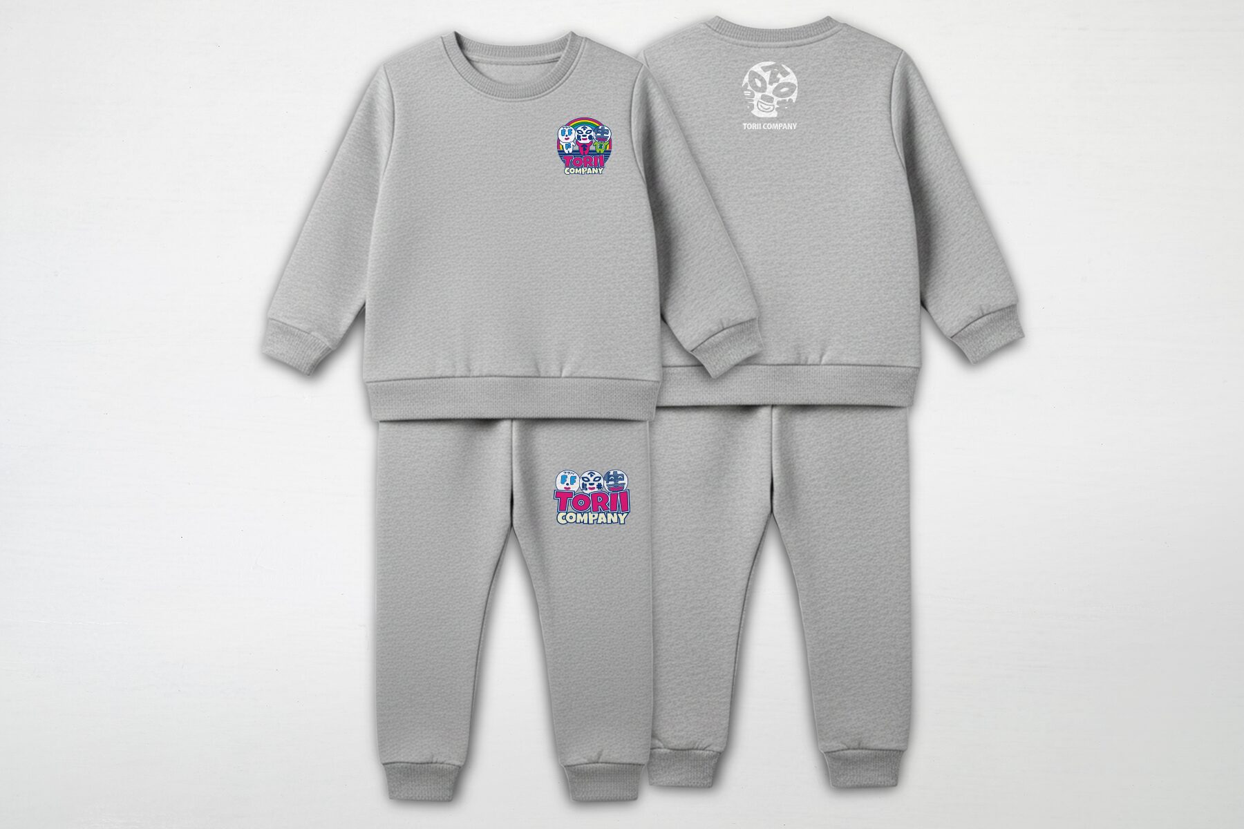 株式会社鳥井様のオリジナルキャラクターを使用したキッズサイズのスウェット上下を制作しました。キャラクターは、お子さまに親しみやすいよう丸みのある可愛らしいフォルムで描き起こしています。