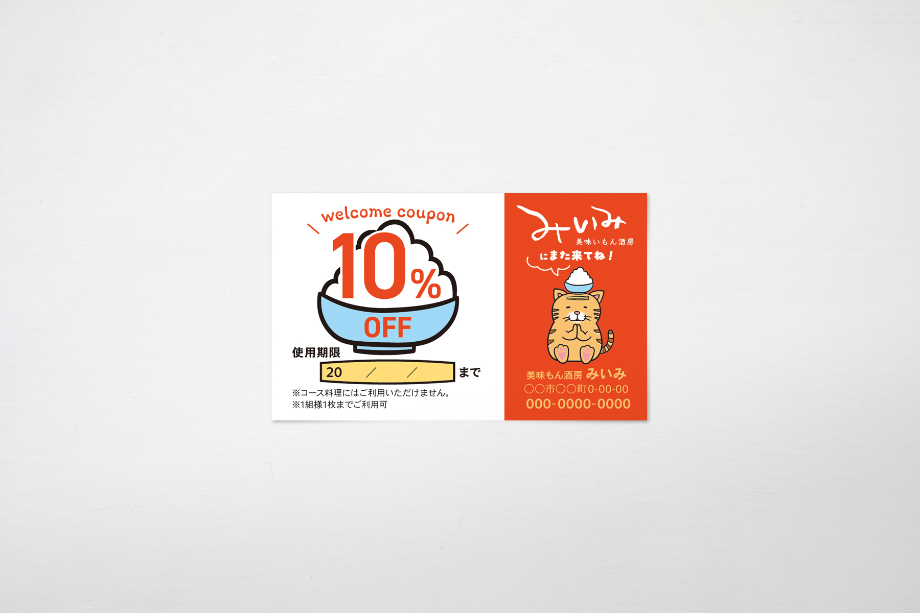 高槻市にある「美味いもん酒房 みいみ」様の割引券を制作しました。以前に制作したねこのキャラクターも活用し、店舗の雰囲気や魅力が伝わる、手に取りやすく利用しやすいデザインに仕上げています。